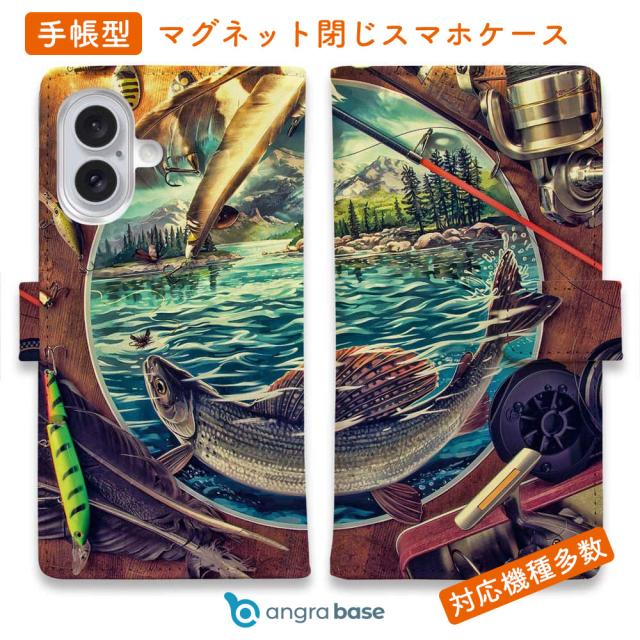 スマホケース 手帳型 カード収納 マグネット iPhone17 Pro Max iPhone Air iPhone16e iPhone16 Pro Max 16 Plus 15 Pro Max Xperia 10 VII Galaxy AQUOS ARROWS Pixel10 XL 釣り 魚 ルアー 送料無料 釣具たちに囲まれて