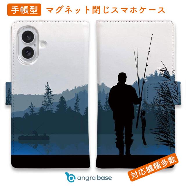 スマホケース 手帳型 カード収納 マグネット iPhone17 Pro Max iPhone Air iPhone16e iPhone16 Pro Max 16 Plus 15 Pro Max Xperia 10 VII Galaxy AQUOS ARROWS Pixel10 XL 釣り 魚 ルアー 送料無料 朝の釣り人の影