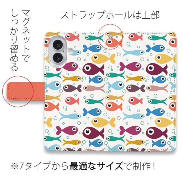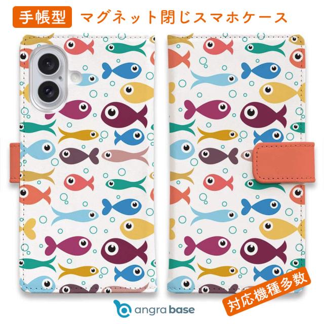スマホケース 手帳型 カード収納 マグネット iPhone17 Pro Max iPhone Air iPhone16e iPhone16 Pro Max 16 Plus 15 Pro Max Xperia 10 VII Galaxy AQUOS ARROWS Pixel10 XL 釣り 魚 ルアー 送料無料 可愛い魚のシームレスパターン