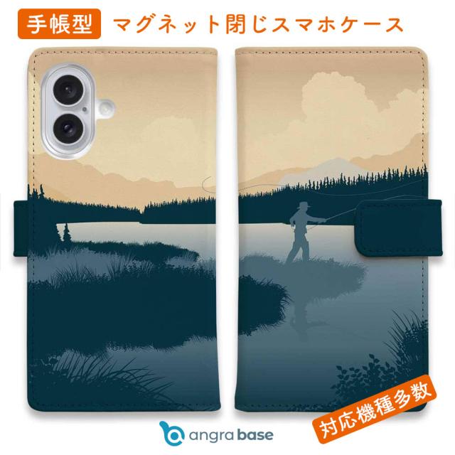 スマホケース 手帳型 カード収納 マグネット iPhone17 Pro Max iPhone Air iPhone16e iPhone16 Pro Max 16 Plus 15 Pro Max Xperia 10 VII Galaxy AQUOS ARROWS Pixel10 XL 釣り 魚 ルアー 送料無料 川岸のフライフィッシャー2