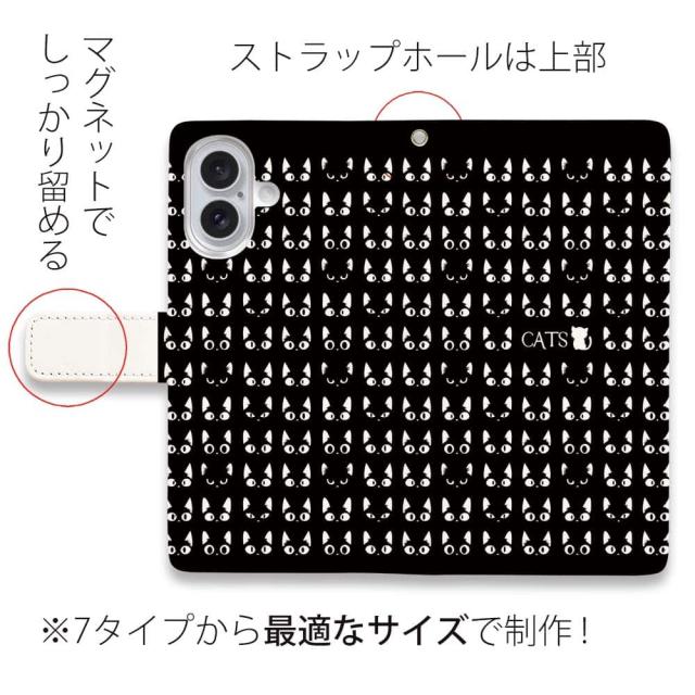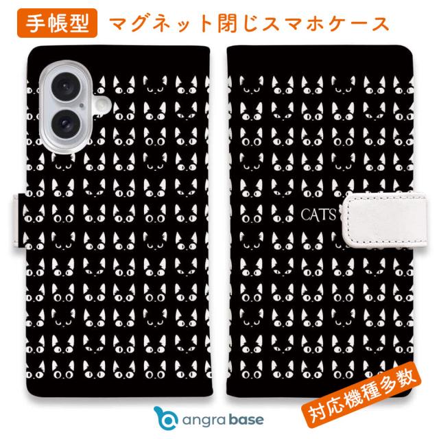 スマホケース 手帳型 カード収納 マグネット iPhone17 Pro Max iPhone Air iPhone16e iPhone16 Pro Max 16 Plus 15 Pro Max Xperia 10 VII Galaxy AQUOS ARROWS Pixel10 XL ネコ 柄 雑貨 小物 黒猫たちのスマホケース