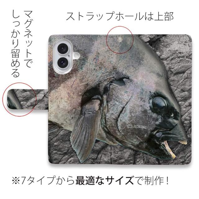 スマホケース 手帳型 カード収納 マグネット iPhone17 Pro Max iPhone Air iPhone16e iPhone16 Pro Max 16 Plus 15 Pro Max Xperia 10 VII Galaxy AQUOS ARROWS Pixel10 XL 釣り 魚 ルアー イシダイの強靭な歯