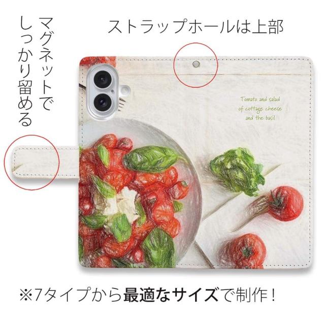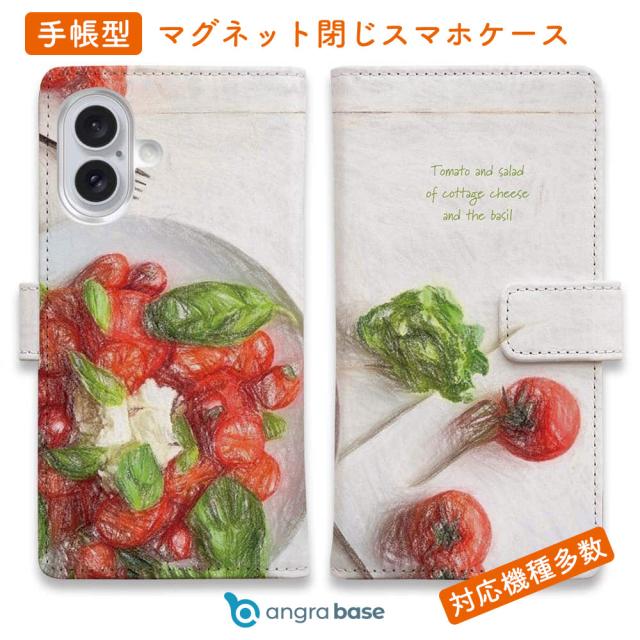 スマホケース 手帳型 カード収納 マグネット iPhone17 Pro Max iPhone Air iPhone16e iPhone16 Pro Max 16 Plus 15 Pro Max Xperia 10 VII Galaxy AQUOS ARROWS Pixel10 XL 野菜 きれい かわいい トマトとバジルのサラダ