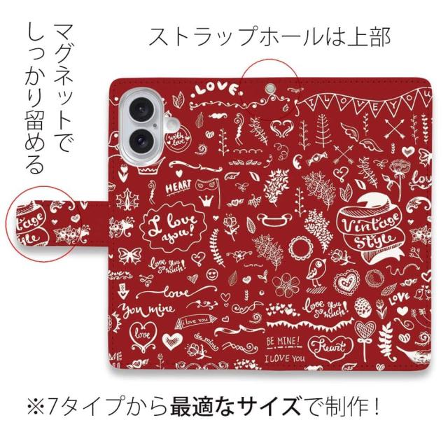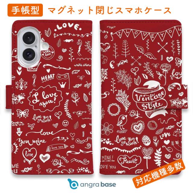 スマホケース 手帳型 カード収納 マグネット iPhone17 Pro Max iPhone Air iPhone16e iPhone16 Pro Max 16 Plus 15 Pro Max Xperia 10 VII Galaxy AQUOS ARROWS Pixel10 XL きれい かわいい ビンテージな レッド