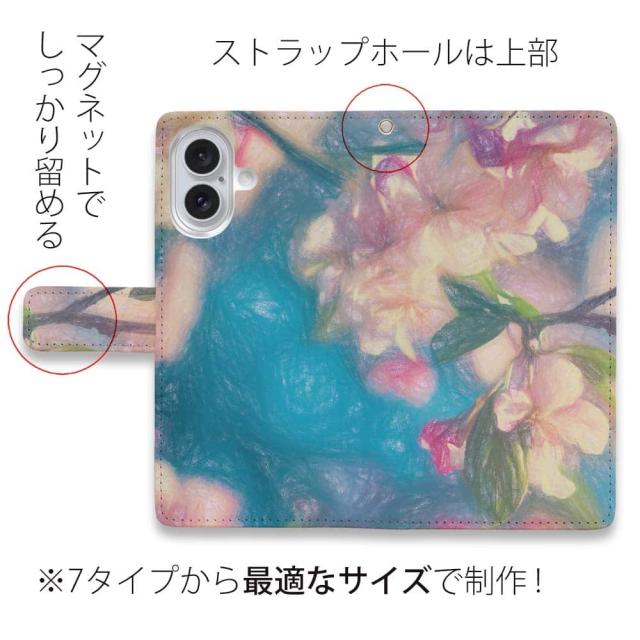 スマホケース 手帳型 カード収納 マグネット iPhone17 Pro Max iPhone Air iPhone16e iPhone16 Pro Max 16 Plus 15 Pro Max Xperia 10 VII Galaxy AQUOS ARROWS Pixel10 XL 花 きれい かわいい 桜と青空 スケッチ