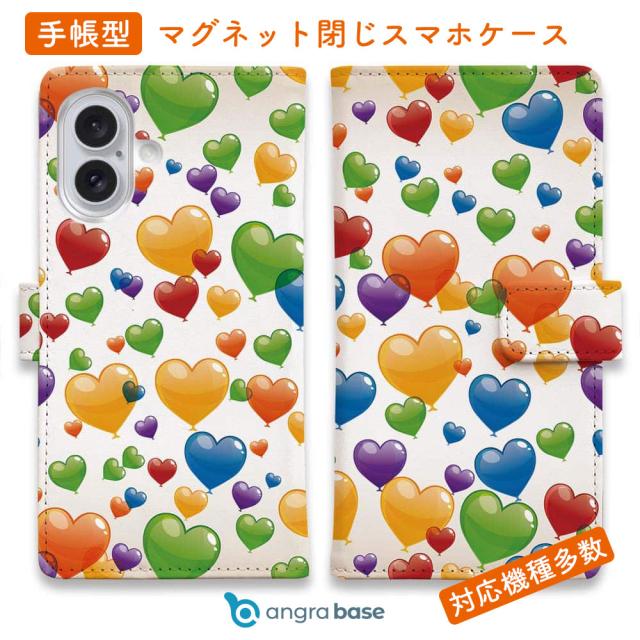 スマホケース 手帳型 カード収納 マグネット iPhone17 Pro Max iPhone Air iPhone16e iPhone16 Pro Max 16 Plus 15 Pro Max Xperia 10 VII Galaxy AQUOS ARROWS Pixel10 XL ハート 模様 カラフル 風船 かわいい カラフルなバルーンハート