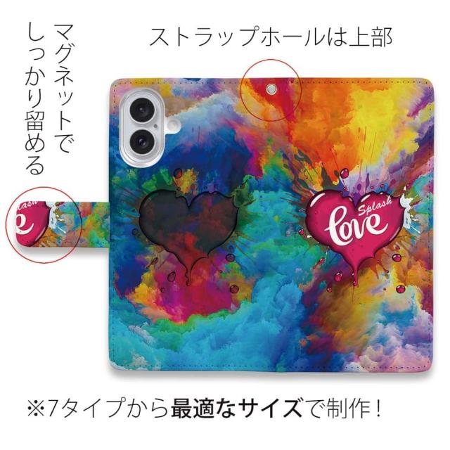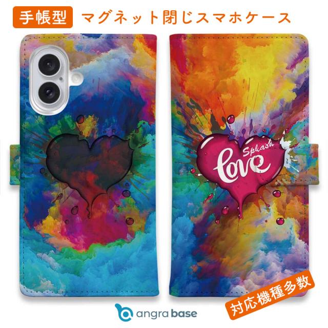 スマホケース 手帳型 カード収納 マグネット iPhone17 Pro Max iPhone Air iPhone16e iPhone16 Pro Max 16 Plus 15 Pro Max Xperia 10 VII Galaxy AQUOS ARROWS Pixel10 XL 愛 ペンキ ペイント カラフル 派手 かわいい Splash Love