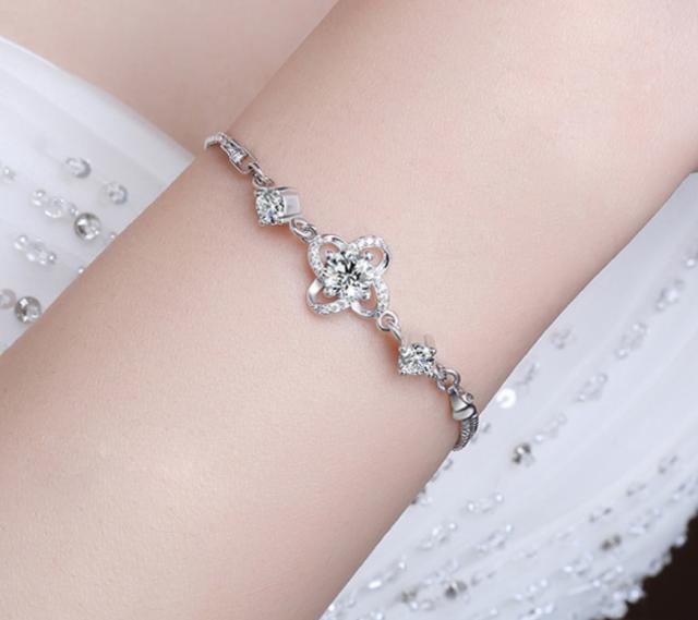 ブレスレット ホワイトクローバー 四つ葉 3連粒ダイヤ ホワイト モチーフ プラチナ仕上げ シルバー925 彼女 妻 女性 プレゼント 人気