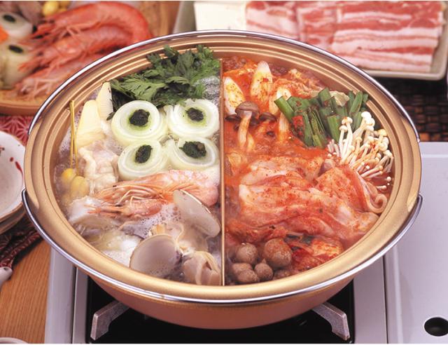 日本製 仕切り鍋 両手鍋 卓上鍋 天ぷら鍋 鍋 すき焼き鍋 おでん鍋 しゃぶしゃぶ鍋 2色鍋 揚げ物OKおすすめ品 人気(代引不可)【送料無料】