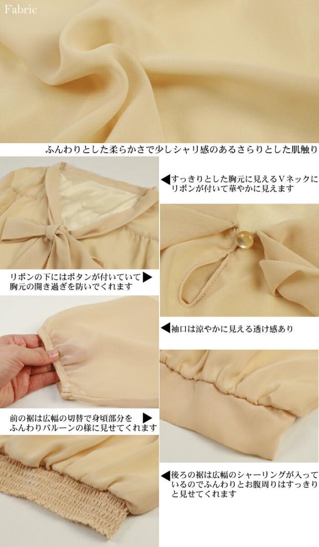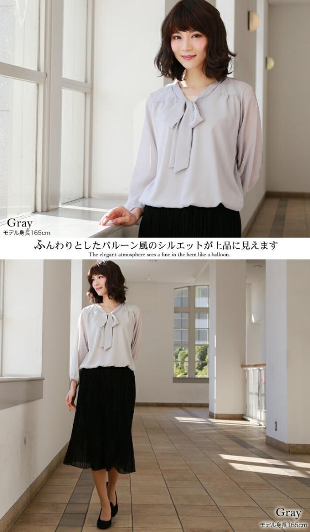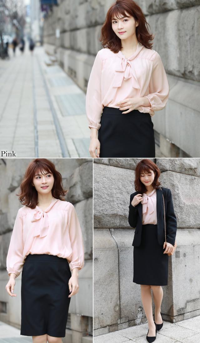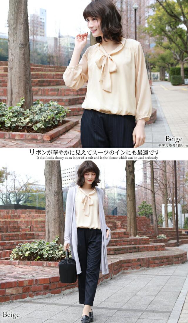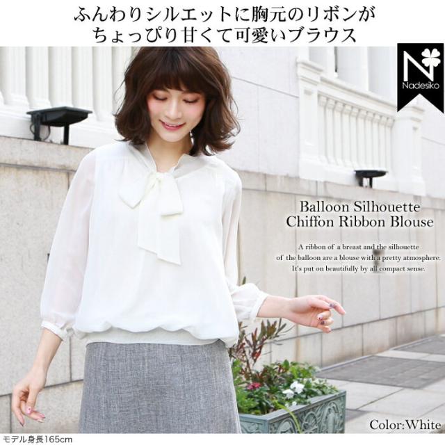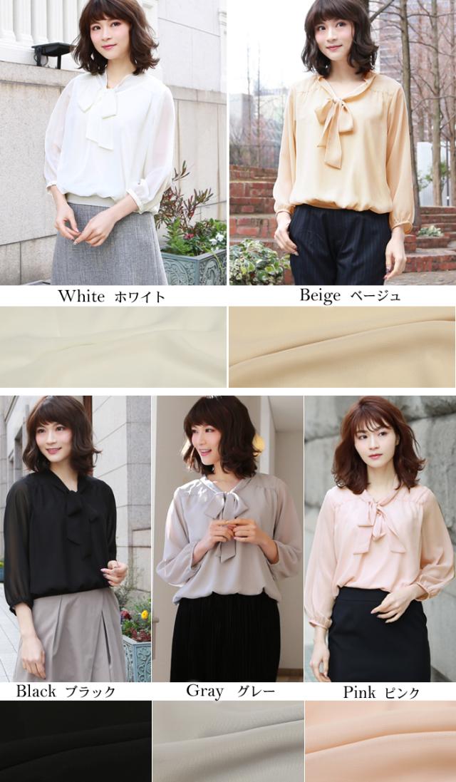 ゆうパケットで送料無料 シフォンリボン付き7分袖ブラウス レディース リボンタイボウタイ レディース 白 フォーマル スーツ