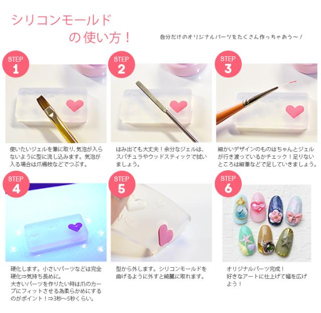 型にジェルを流して硬化するだけで好きなパーツがたくさん作れます!繰り返し使える!