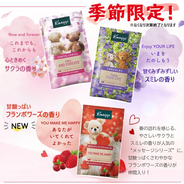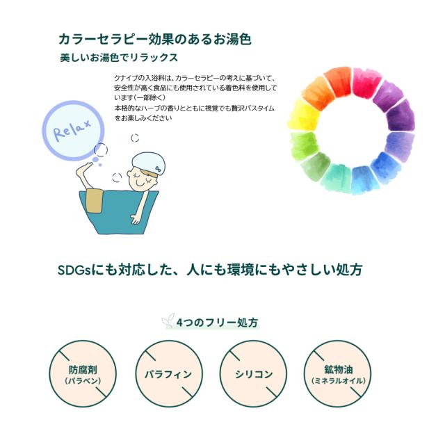 - クナイプはずっと使っている入浴剤ですが、ボトルタイプの為 変化が無いのですが、これは色々入っていて楽しいです 一般店にはこれほどの多種類が無く 日々の気分で選べて良いです
