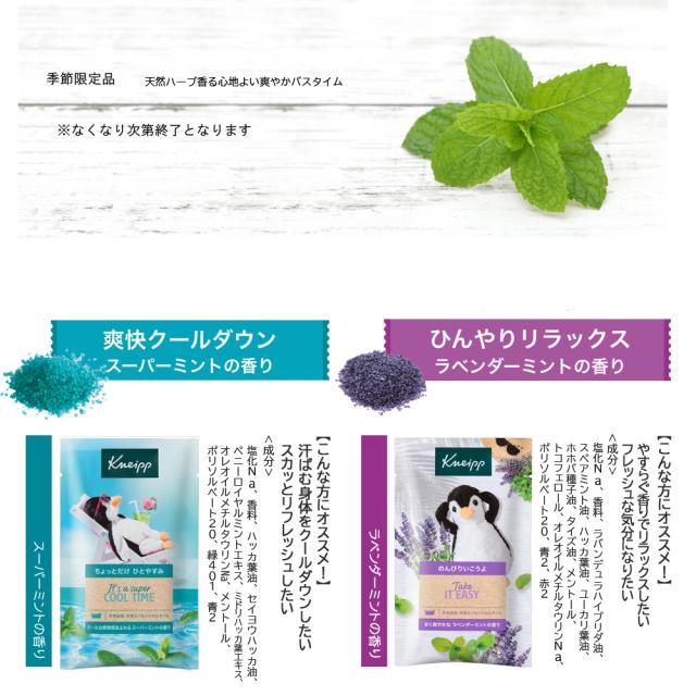 - 暑い夏だからこそ、シャワーじゃなくて、お風呂!クーラーで冷えた体を優しく温めてくれる、リラックス効果ありで、今回購入したのはお得感ありで、その日の気分で選べて楽しかったです♪ 私はいつも、クナイプのお...