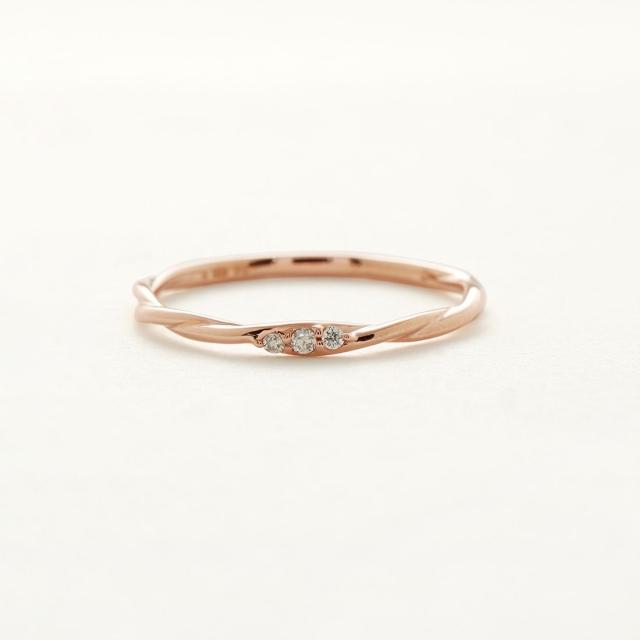 ダイヤモンドが上品にきらめくピンクゴールドリング。