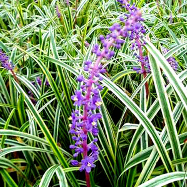 ヤブランは、丈夫で手のかからない常緑性の多年草です。 斑入りヤブランはヤブランの園芸品種で、葉の縁に白い斑が入ります。 ヤブランの中でもポピュラーで人気も高い品種です。 日陰でもよく育つので、和風庭園の下草やグランドカバーとして広く利用されています。 艶やかで上品な細葉が魅力で、秋が近づくと長い穂を伸ばして美しい色合いの小花を咲かせます。 |