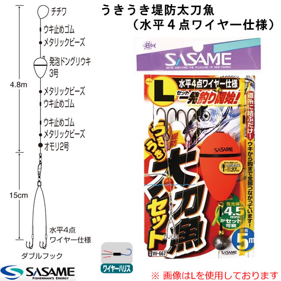 ささめ針 うきうき堤防太刀魚 水平4点ワイヤー仕様 W-667 (タチウオ仕掛け)