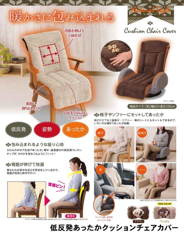 椅子カバー 低反発あったかクッションチェアカバー ブラウン ソファ シートカバー あったか 冬