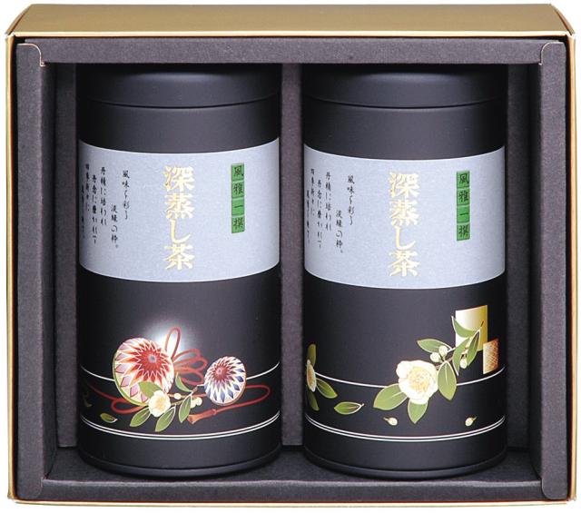 お歳暮 御中元 お茶 緑茶 深蒸し茶 日本茶 煎茶 茶葉 静岡茶園 特選深むし茶 手鞠 茶花缶2本セット