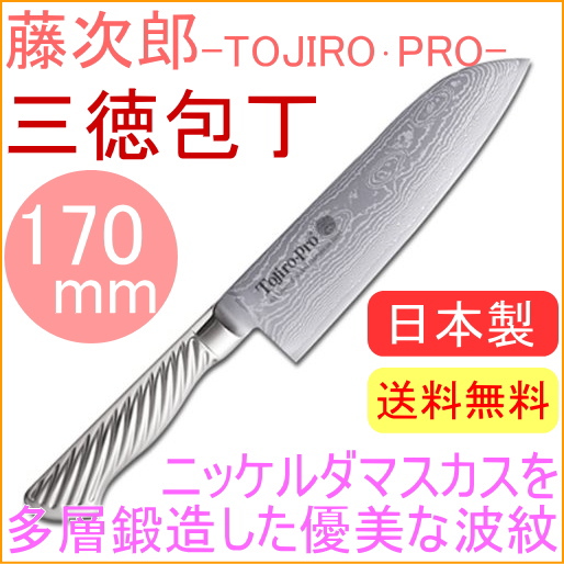 藤次郎プロ ニッケルダマスカス鋼 三徳庖丁 170mm (F-1036) 送料無料 両刃 万能 切る キッチン多層 ステンレス 鍛造 日本製