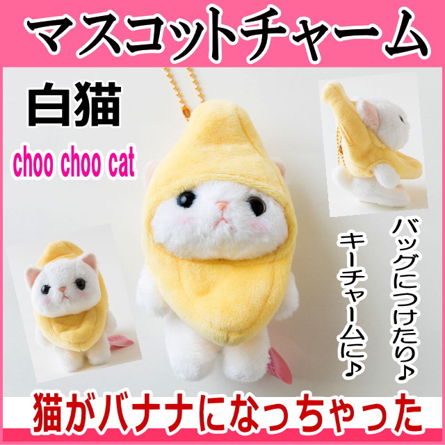 ぬいぐるみ マスコット 猫 バナナコスチューム 白猫 フルーツ猫 choochoo本舗 チューチュー本舗 ネコグッズ プチギフト 内藤デザイン