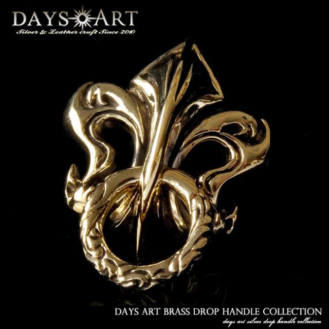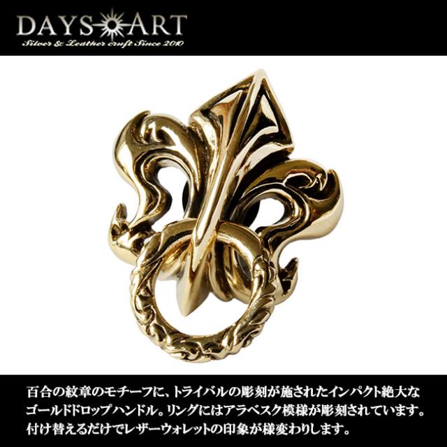 ドロップハンドル ウォレットチェーン用パーツ メンズ ブラス製 真鍮製 百合の紋章モチーフ アラベスク彫刻 ゴールド 【ギフト】 dhb025