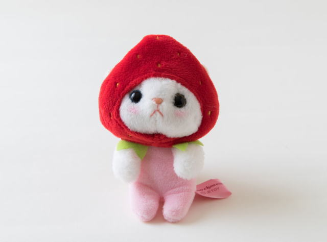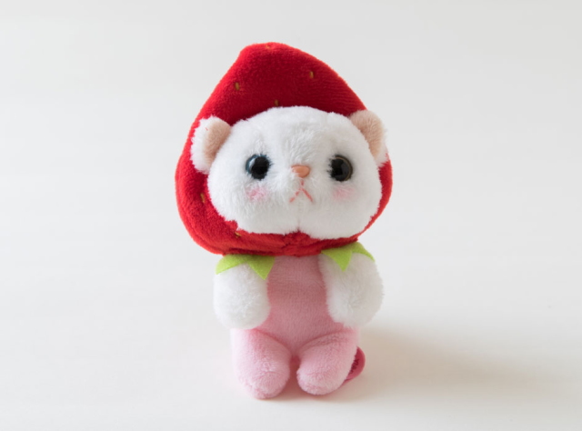choochoo cat フルーツ猫シリーズ 【いちごコスチューム】 ぬいぐるみマスコットです。