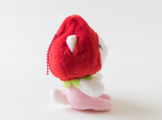 猫のぬいぐるみマスコット 猫 いちごコスチューム 白猫 フルーツ猫 choochoo本舗 チューチューネコグッズ プチギフト 内藤デザイン