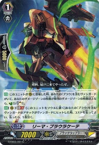 【自】【(R)】【Gブレイク】(1):[このユニットをソウルに置く]あなたの「ブラウ」を含むヴァンガードのアタックがヴァンガードにヒットした時、コストを払ってよい。払ったら、1枚引く。