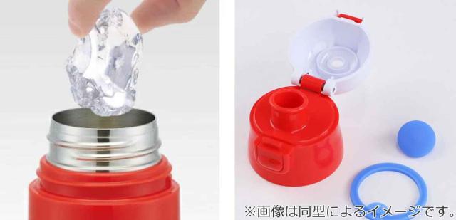 広口設計と少量パーツでお手入れ楽々口径が広いので大きな氷も入れやすく、しっかり洗えて清潔に保てます。キャップユニットに付属しているパッキンは2つだけなので、お手入れ簡単です。