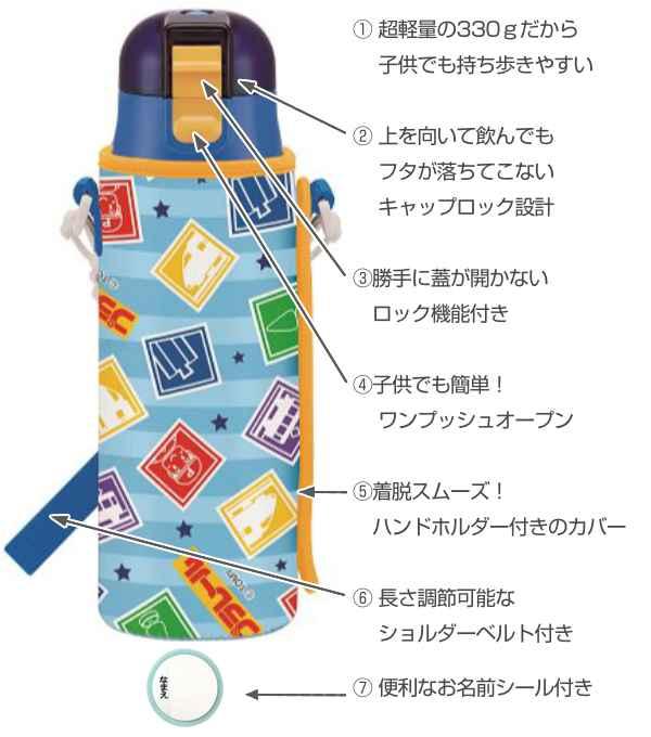 水筒 キッズ 470ml プラレール 直飲み ワンタッチ カバー付き ( 保冷 ステンレス ワンプッシュ ステンレスボトル 子供 軽量 直のみ ダイレクトボトル 子供用水筒 幼稚園 保育園 )
