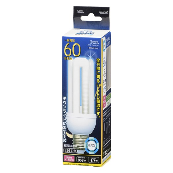 LED電球 D形 60形相当 853lm 昼光色 E26 全方向配光280° 密閉形器具対応 断熱材施工器具対応 OHM 06-1683 LDF7D-G-E26 送料無料