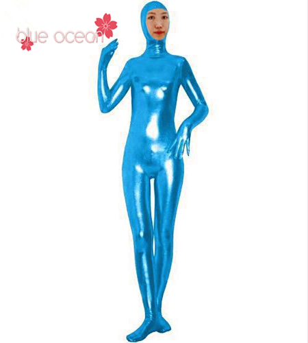 全身タイツ ライトブルー 単色 光沢のある 大人用 顔開口 通気 柔らかい セクシー 弾力と伸縮性あり コスプレ衣装 Cosplay