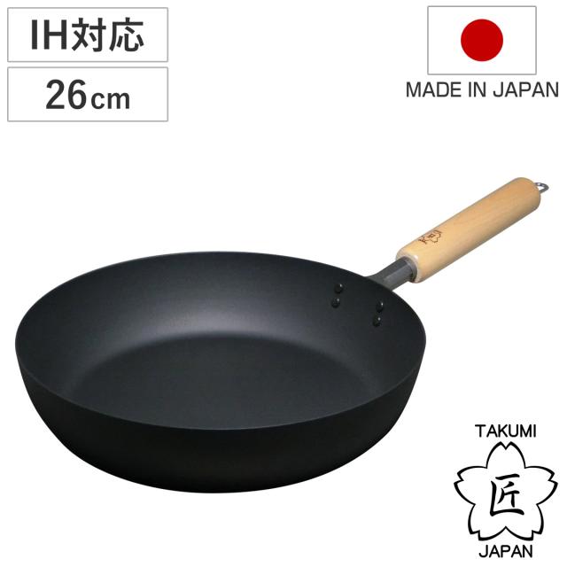 鉄フライパン 26cm IH対応 鉄製 匠 マグマプレート 日本製 ( ガス火対応 フライパン 鉄製フライパン 浅型フライパン 炒め鍋 片手鍋 26センチ 木柄 鉄鍋 鉄なべ 調理器具 おしゃれ )