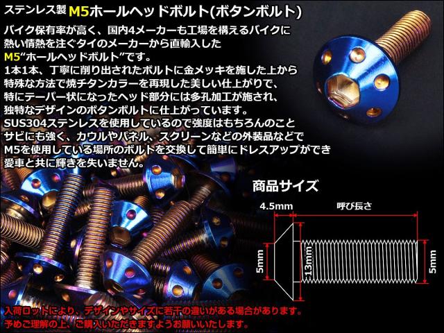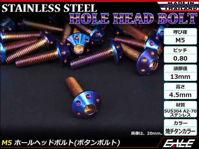ボタンボルト M5×20mm P0.8 ホールヘッドボルト 六角穴 SUS304 ステンレス削り出し 焼きチタンカラー TR0076