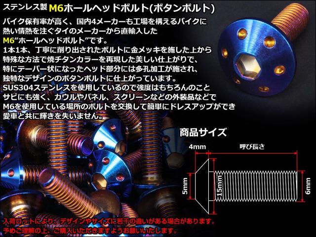 ボタンボルト M6×12mm P1.0 ホールヘッドボルト 六角穴 SUS304 ステンレス削り出し 焼きチタンカラー TR0079