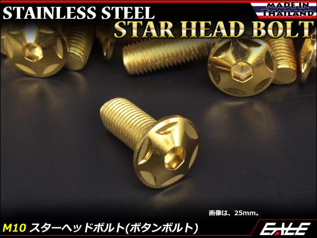 M10×65mm P1.25 スターヘッドボルト ゴールド ボタンボルト ステンレス削り出し TR0623