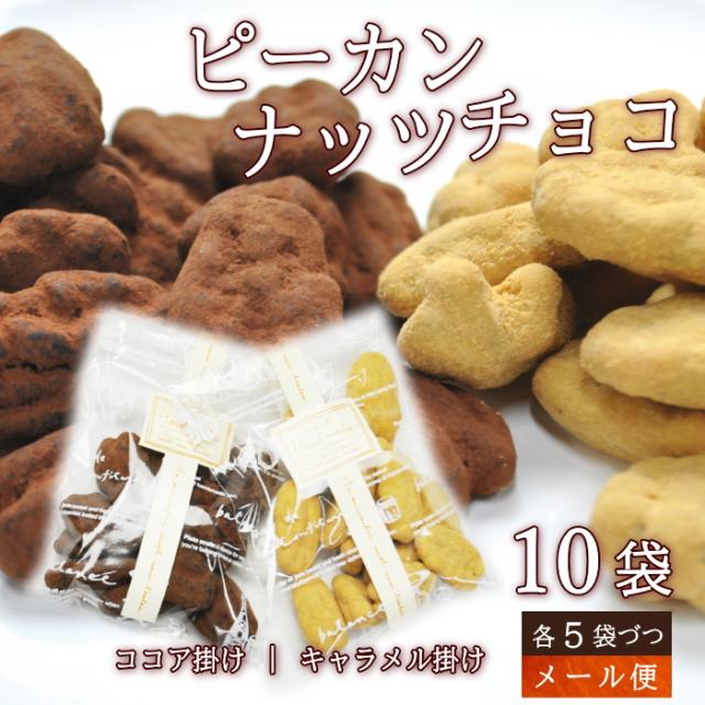 ピーカンナッツ チョコ 10袋セット(キャラメル5袋&ココア5袋) ナッツ チョコ ピーカン ナッツ メール便で送料無料