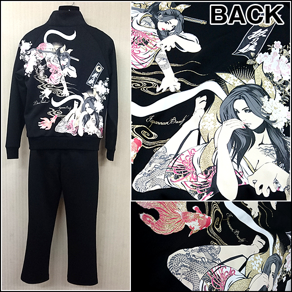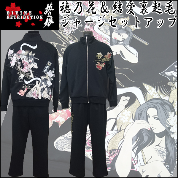 抜刀娘「穂乃花&結愛裏起毛ジャージセットアップ」(メンズ 上下セットアップ 和柄ブランドアパレル 裏起毛ジャージSETUP 部屋着 防寒)