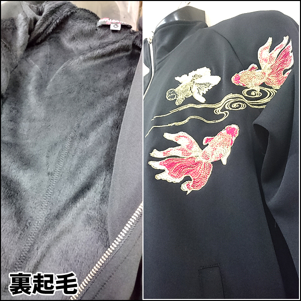 豪華刺繍により浮き出るほど美しい金魚と金箔ラメ、プリントのコントラストが派手すぎず長くご愛用頂けるデザインです。