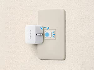 リモートボタンで起動SwitchBotリモートボタン(オプション) スマホ操作&音声コントロール必要なし、ボタンを押すだけで起動。特にスマホをお使いにならないお子様やご年配の方にお薦めです。ベッドサイドや子ども部屋に置いておけば、ボタン一つで自由にSwitchBotボットを作動させます。 |
