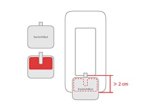 スイッチパネルに2cmのスペースを確認SwitchBotリモートボタン(オプション) 貼り付けてから約30秒間強く押し付けます。24時間以上おいてから使用するほうがオススメです。 |
