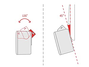 最大回転角:135°押し下げるときにアームがスイッチ・ボタンの表面に接触できることをご確認ください。 |