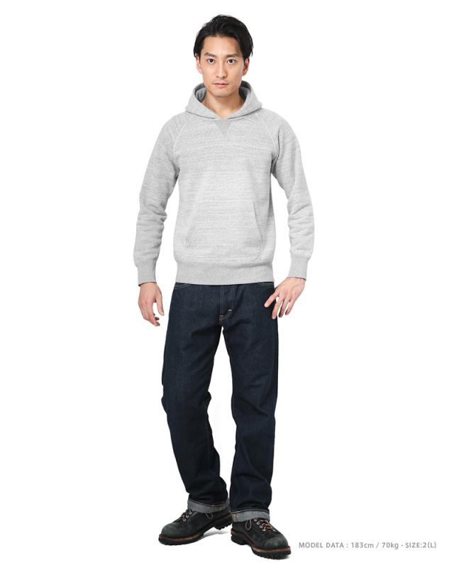 大正時代から稼働し続ける稀少な吊り編み機で丁寧に編み込んだ、着心地抜群のスウェットパーカが登場。枚数にして1日にわずか12着程度しか編み上げられない貴重な吊り編み素材はBARNSの定番にして至極の逸品。テンションをかけず空気を含みながらゆっくりと編むことで肌触りや着心地抜群!裏毛のループは吊り編みならではです。縫製部分にはフラットシーマー仕上げを採用。また、合わせ部分の凹凸がなく平らに仕上がることで着用によるストレスを軽減しています。脇に縫い目のない丸胴ボディとなっています。コシのある生地を使用することによりフードに「立ち」が生まれ、他のパーカーとは一線を画す存在感を醸し出しています。ゆったり感を持たせたサイズ感で、コーディネートに幅が広がる一着です。MADE IN JAPAN