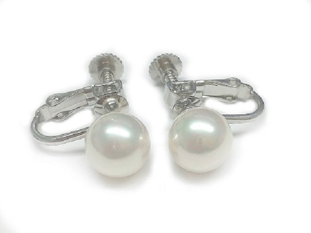 国産貝パールイヤリング スタッド真珠イヤリング アコヤの貝核使用(8.0mm) 【6月誕生石真珠】
