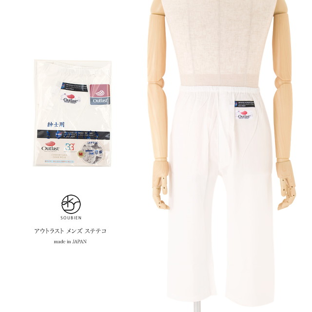 和装ステテコ メンズ Outlast(アウトラスト) 白 ホワイト 無地 温度調節素材 NASA オールシーズン 和装下着 肌着 下ばき したばき 下穿き ゴム 着付け小物 和装小物 日本製 【Mサイズ】【Lサイズ】【暑さ対策_b】