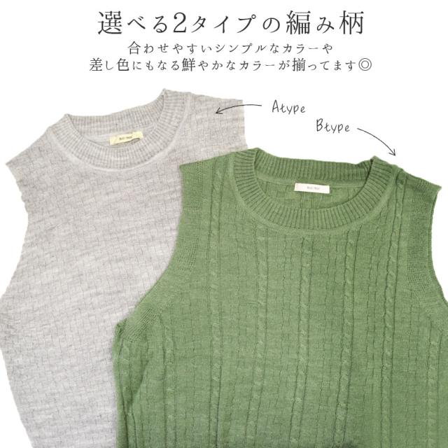 【ニットベスト レディース ニット ベスト 選べる 2タイプ トップス セーター 薄手 ノースリーブ ケーブル編み ブロック編み 市松模様編み 丸首 サイドスリット シンプル 無地 重ね着 レイヤード M L オフィスカジュアル オフィス】