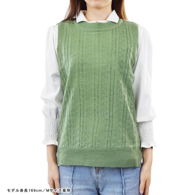 ベスト ニットベスト レディース ニット サマーニット トップス セーター 薄手 ノースリーブ ケーブル編み ブロック編み 市松模様 丸首 スリット きれいめ シンプル 無地 重ね着 レイヤード オフィスカジュアル 送料無料 fk25 (bdg289)