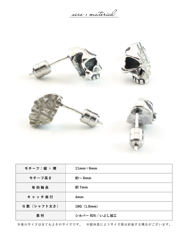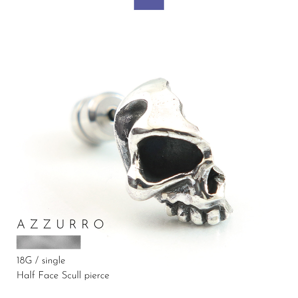 ピアス スタッド スカル 骸骨 髑髏 ドクロ シルバー925 いぶし アズーロ AZZURRO メンズ レディース 片耳用 ブランド シンプル