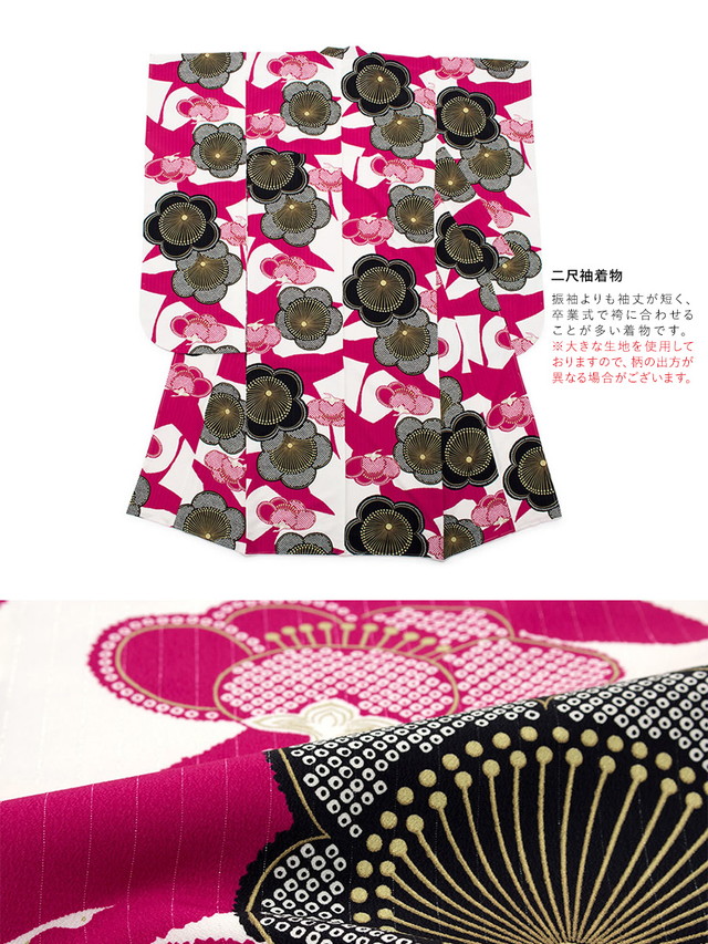※着物の柄部分は大きな生地を使用して作られておりますので、色や柄の出方、模様の配置等が画像と異なる場合がございます。