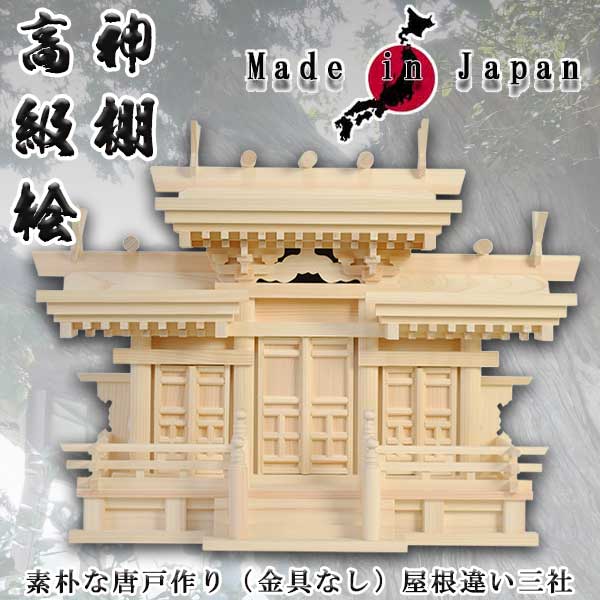 マス組付屋根違い三社(白鳥)大 唐戸・高級桧製 国産高級神棚 送料無料